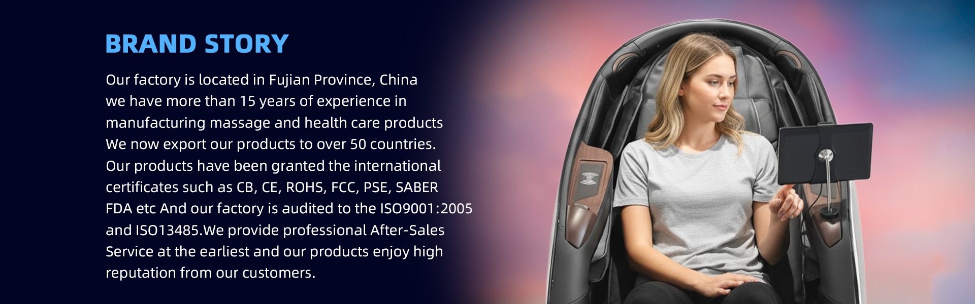 We have more than 15 years experience in massage chair manufacturing.